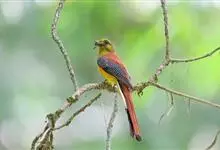 四声杜鹃:是中型鸟类,体长31-34厘米。头顶和后颈暗灰色;头侧浅灰,眼先、颏、喉和上胸等色更浅 ;上体余部和两翅表面深褐色 ;尾与背同色,但近端处具一道宽黑斑。下体自下胸以后均白,…全部>>