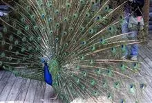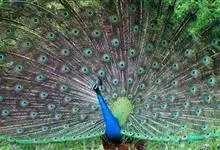 绿孔雀是鸡形目雉科孔雀属鸟类,别名:孔雀、越鸟、爪哇绿孔雀。雄性绿孔雀全身呈翠绿色,并反紫铜色光。头顶有一簇直立的冠羽,尾上复羽发达的约长1米,每羽端部有一个蓝色和翠绿色镶嵌的眼状斑,…全部>>