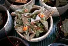 大和锦是景天科拟石莲花属的多肉植物。肉质叶排成紧密的莲座状,广卵形至散三角卵形,背面突起呈龙骨状,叶长3至4厘米,宽约3厘米,先端急尖。叶色灰绿,密布红褐色的斑纹。花序高约30cm。小花红色,上部黄色。…全部>>