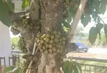 大果榕是桑科榕属的小乔木,株高可达10米;幼枝被柔毛;叶互生,宽卵状心形或近圆形;雄花无梗、匙形、花丝长,雌花生于雌株榕果内,子房白色;榕果簇生于树干基部或老茎短枝上、扁球形或陀螺形,…全部>>