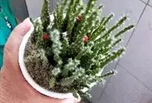 叶子表面宽厚,富肉质感且带有磨纱质感,看像石头质地;开红色小花,生于植株顶部,倒伞形密生,形状像花球一样。 全部>>