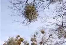 槲寄生Nakai)是檀香科槲寄生属植物,又名冬青、北寄生、寄生子等。槲寄生为灌木,植株高0.3-0.8米;茎、枝均为圆柱状;叶对生,长椭圆形或椭圆状披针形,顶端圆形或圆钝,基部渐窄,叶柄短;雌雄异株,…全部>>