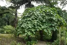 大果榕是桑科榕属的小乔木,株高可达10米;幼枝被柔毛;叶互生,宽卵状心形或近圆形;雄花无梗、匙形、花丝长,雌花生于雌株榕果内,子房白色;榕果簇生于树干基部或老茎短枝上、扁球形或陀螺形,…全部>>