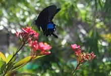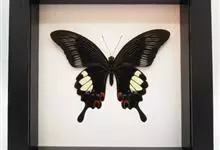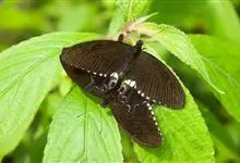 玉斑凤蝶Papilio helenus 别名白纹凤蝶,是凤蝶科凤蝶属美凤蝶亚属大型种类。雌雄同型;体翅皆黑色,后翅正面中室外有3个并列的白色斑,亚外缘有1列模糊的新月形红色斑,…全部>>