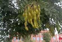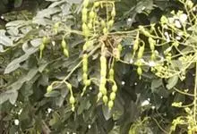 槐 Schott),豆科槐属的落叶乔木。树皮暗灰色,树冠球形,老时则呈扁球形或倒卵形。枝叶密生,羽状复叶。圆锥花序顶生,花蝶形,夏季开黄白色花,略具芳香。荚果肉质,念珠状不开裂,黄绿色,常悬垂树梢,…全部>>