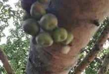 大果榕是桑科榕属的小乔木,株高可达10米;幼枝被柔毛;叶互生,宽卵状心形或近圆形;雄花无梗、匙形、花丝长,雌花生于雌株榕果内,子房白色;榕果簇生于树干基部或老茎短枝上、扁球形或陀螺形,…全部>>