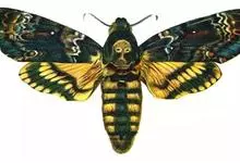 鬼脸天蛾,是鳞翅目天蛾科面形天蛾属动物。成虫翅展100~125毫米,体黑褐色;胸背有骷髅形斑纹;卵圆球形,直径约2毫米,淡黄绿色,表面光滑;老熟幼虫体长70~90毫米,蛹体长约56毫米;前翅为褐色,…全部>>