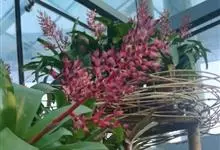 果子蔓 又名擎天凤梨、红杯凤梨、西洋凤梨,为多年生草本。叶长带状,浅绿色,背面微红,薄而光亮。穗状花序高出叶丛,花茎、苞片和基部的数枚叶片呈鲜红色。果子蔓叶片翠绿,光亮,深红色管状苞片,色彩艳丽持…全部>>