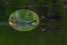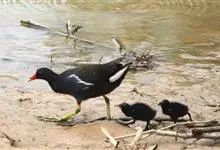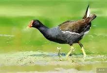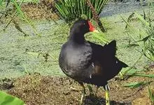 黑水鸡:是鹤形目、秧鸡科的鸟类,共有12个亚种。中型涉禽,体长24-35厘米。嘴长度适中,鼻孔狭长;头具额甲,后缘圆钝;嘴和额甲色彩鲜艳。翅圆形,第2枚初级飞羽最长,或第2枚和第3枚初级飞羽等长,…全部>>