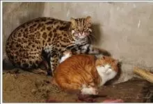 渔猫:是猫科、豹猫属的一种中等体型的食肉动物,体长65-85厘米,体重约为5千克。渔猫的头部较宽,吻部较长,耳朵又小又圆,耳背是黑色的,中间还点缀着明显的白斑。…全部>>
