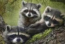 浣熊:食肉目、浣熊科的一种哺乳动物,成年体长40-65厘米,尾长20-40厘米,体重4-10千克,雄性稍大于雌性。体型较小。面部有黑色眼斑,形象滑稽,绰号“蒙面大盗”;尾部有5到7条黑白相间的环纹。…全部>>