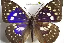 大紫蛱蝶为大型蝶种,翅展约86~110mm。翅紫黑色,有白色斑点点缀其中,雄蝶的翅具强烈紫色虹彩,其余部分暗褐色,后翅臀角具粉色斑。雌蝶体型较大,但是没有蓝紫金属光泽。原产于东亚的蝶类。…全部>>