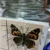 大红蛱蝶Vanessa indica Herbst,翅黑褐色,外缘波状。前翅M1脉外伸成角状,翅顶角有几个白色小点,亚顶角斜列4个白斑,…全部>>