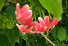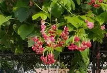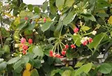 使君子 Jongkind)是使君子科、使君子属攀援灌木,叶对生,椭圆形,两面均被灰白色柔毛。穗状花序,倒挂下垂。花期夏秋。果有五棱,熟时黑色,种子白色。分布于印度、缅甸、菲律宾和中国。喜温润,深根性,…全部>>