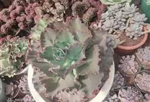 女王花笠,又名扇贝石莲花、女王花舞笠,是景天科拟石莲花属的多肉植物。由美国加利福尼亚州的育种师Dick Wright于1964年培育。特征是呈大波浪状褶皱的红色叶缘和气质高贵的粉紫色调。…全部>>