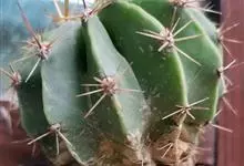 子孙球是仙人掌科子孙球属植物。植株小,球形至圆筒状,基部易生出仔球而丛生,大大小小,叠垒成群。球体鲜绿色或墨绿色,棱16-20,疣粒顶端为刺座,生有灰白色的弯刺,刺25-30,白色或淡黄色,…全部>>