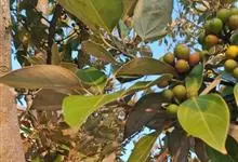 大果榕是桑科榕属的小乔木,株高可达10米;幼枝被柔毛;叶互生,宽卵状心形或近圆形;雄花无梗、匙形、花丝长,雌花生于雌株榕果内,子房白色;榕果簇生于树干基部或老茎短枝上、扁球形或陀螺形,…全部>>