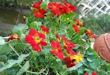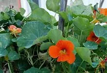 旱金莲是旱金莲科旱金莲属蔓生一年生草本植物。叶互生,叶柄向上扭曲,盾状,叶圆形,具波状浅缺刻,下面疏被毛或有乳点;花黄、紫、桔红或杂色,花托杯状,花瓣为圆形,边缘具缺刻;果实为扁球形;花果期6-10月,…全部>>