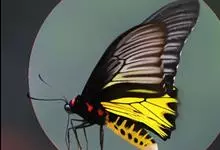 荧光裳凤蝶是凤蝶科裳凤蝶属的一种大型蝴蝶,该物种共有3个亚种。该蝶飞翔的时候姿态优美,前翅黑色,后翅金黄色和黑色交融的斑纹在阳光照射下金光灿灿,显得华贵美丽。幼虫寄主为多种马兜铃属的植物,取食马兜铃…全部>>