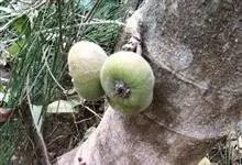 大果榕是桑科榕属的小乔木,株高可达10米;幼枝被柔毛;叶互生,宽卵状心形或近圆形;雄花无梗、匙形、花丝长,雌花生于雌株榕果内,子房白色;榕果簇生于树干基部或老茎短枝上、扁球形或陀螺形,…全部>>