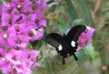 玉斑凤蝶Papilio helenus 别名白纹凤蝶,是凤蝶科凤蝶属美凤蝶亚属大型种类。雌雄同型;体翅皆黑色,后翅正面中室外有3个并列的白色斑,亚外缘有1列模糊的新月形红色斑,…全部>>
