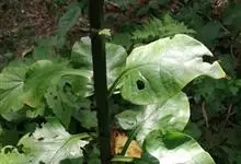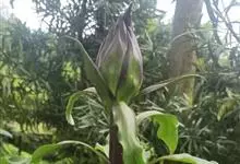 云南大百合Cardiocridum giganteum株高1~2米;地下部基生叶的叶柄基部膨大形成鳞茎,开花后凋萎;在老鳞茎基部每年可形成数个小鳞茎。花茎高大,直径达3~4厘米,中空,无毛。云南大百…全部>>