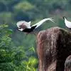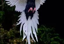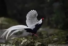 白鹇,是鸡形目雉科鹇属的一种留鸟。雄鸟上体白色并具黑色纹,下体黑色,头顶具黑色长羽冠,尾白而长;雌鸟体型较小,以橄榄褐色为主,下体具白色或皮黄色细纹;虹膜褐色,眼周具红色裸皮,喙黄色,脚鲜红色。…全部>>