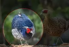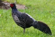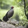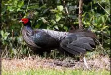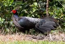 黑鹇是鸡形目雉科目鹇属鸟类,又称鸬雉、黑鸡。体型中等。雄鸟上体黑褐色,背羽具黑紫色金属光泽;头顶具黑羽冠;脸部裸皮呈红色,散生稀疏黑色纤羽;尾长而侧扁,中央两对尾羽红褐色,…全部>>