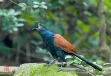 褐翅鸦鹃,是鹃形目鸦鹃科鸦鹃属的鸟类。褐翅鸦鹃的身体为黑色;头颈和胸带蓝紫色金属光泽并具黑亮的羽干纹,下胸至腹部泛金属绿光泽;两翼和肩部为棕栗色,外侧飞羽具暗色羽端,尾羽闪铜绿色光泽;虹膜赤红色,…全部>>