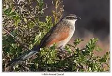 斑翅凤头鹃: 成鸟具羽冠,上体及头侧、翅、尾等黑色,具铁绿色亮辉,尾羽端部具白斑,两侧者形宽,中央者较狭;下体白色、淡灰白或略带棕黄色。虹膜褐至红褐色;嘴黑色;脚灰蓝黑色。…全部>>