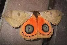 翅正面淡灰褐色,多褐色波纹状线,前后翅的外缘和亚缘线3条,中横线1条,前翅中室5条,从前室前缘到后翅cu2室有1列眼状纹,以两翅的m3室斑及cu1室斑为最显著,内半部橘红色,外半部黑色,…全部>>