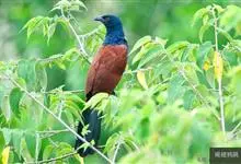 褐翅鸦鹃,是鹃形目鸦鹃科鸦鹃属的鸟类。褐翅鸦鹃的身体为黑色;头颈和胸带蓝紫色金属光泽并具黑亮的羽干纹,下胸至腹部泛金属绿光泽;两翼和肩部为棕栗色,外侧飞羽具暗色羽端,尾羽闪铜绿色光泽;虹膜赤红色,…全部>>