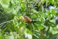 褐翅鸦鹃,是鹃形目鸦鹃科鸦鹃属的鸟类。褐翅鸦鹃的身体为黑色;头颈和胸带蓝紫色金属光泽并具黑亮的羽干纹,下胸至腹部泛金属绿光泽;两翼和肩部为棕栗色,外侧飞羽具暗色羽端,尾羽闪铜绿色光泽;虹膜赤红色,…全部>>