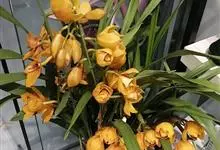 大花蕙兰,兰科兰属的常绿附生草本植物。大花蕙兰的假鳞茎椭圆形,粗大;根多为肉质圆柱状,粗壮肥大,大都呈灰白色;叶宽而长,下垂,浅绿色有光泽;花亭斜生,稍弯曲;花大,色泽艳丽,…全部>>