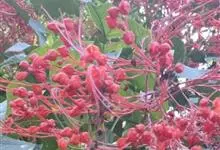 赪桐 Sweet)是唇形科、大青属灌木,高1-4米,叶片圆心形,顶端尖或渐尖,基部心形,边缘有疏短尖齿,表面疏生伏毛,二歧聚伞花序组成顶生,大而开展的圆锥花序,花序的最后侧枝呈总状花序,花萼红色,…全部>>