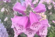 毛地黄是车前科、毛地黄属一年生或多年生草本植物。株高0.5—1米,茎直立,少分枝,全株被灰白色短柔毛和腺毛叶基生,呈莲座状,卵圆形或卵状披针形。顶生总状花序,花冠钟状,紫红色,内面有浅白斑点。菊果卵形。…全部>>