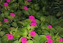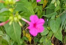 即紫茉莉,英文名:Four-o'clock,Marvel of Peru,为紫茉莉科、紫茉莉属多年生草本植物,一年生栽培。株高50~80cm。根粗壮,茎多分枝而散生。叶对生,卵形或心脏形。花数朵簇生…全部>>