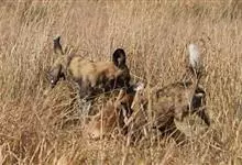 非洲野犬,属于食肉目犬科非洲野犬属哺乳动物。又称四趾猎狗或非洲猎犬;其腿长身短、体形细长;身上有鲜艳的黑棕色、黄色和白色斑块;吻通常黑色,头部中间有一黑带,颈背有一块浅黄色斑;尾基呈浅黄色,中段呈黑色,…全部>>