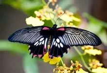 美凤蝶又名多型蓝凤蝶、大凤蝶,是鳞目凤蝶科凤蝶属动物。美凤蝶雄蝶无尾突,翅黑色,正面各翅室中部有深色条纹,分布蓝色鳞片,反面前后翅基部有红斑,后翅臀角有环状红斑。雌蝶具多型,前翅浅灰色,外缘和翅脉黑色,…全部>>