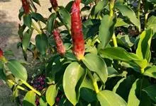 闭鞘姜 S. R. Dutta)是闭鞘姜科闭鞘姜属多年生草本植物,高可达3米。茎基部近木质,顶部常分枝旋卷;叶长圆形或披针形;穗状花序顶生,椭圆形或卵圆形;蒴果稍木质,成熟时红色,…全部>>