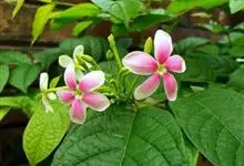 使君子 Jongkind)是使君子科、使君子属攀援灌木,叶对生,椭圆形,两面均被灰白色柔毛。穗状花序,倒挂下垂。花期夏秋。果有五棱,熟时黑色,种子白色。分布于印度、缅甸、菲律宾和中国。喜温润,深根性,…全部>>