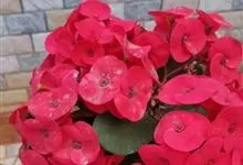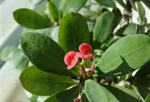 铁海棠为大戟科大戟属蔓生灌木植物;茎多分枝,具纵棱,呈旋转状;叶互生,通常集中于嫩枝上;每个花序基部边缘具微小的红色尖头;苞叶先端圆且具小尖头,无柄,上面鲜红色,下面淡红色;苞片丝状;子房光滑无毛,…全部>>