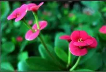 铁海棠为大戟科大戟属蔓生灌木植物;茎多分枝,具纵棱,呈旋转状;叶互生,通常集中于嫩枝上;每个花序基部边缘具微小的红色尖头;苞叶先端圆且具小尖头,无柄,上面鲜红色,下面淡红色;苞片丝状;子房光滑无毛,…全部>>