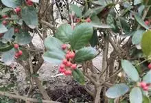 构骨叶冬青学名枸骨,又名猫儿刺、老虎刺、八角刺、鸟不宿、构骨、狗骨刺、猫儿香和老鼠树。常绿灌木或小乔木,高1-3米,二年枝褐色,三年生枝灰白色,叶片厚革质,花淡黄色,果球形,直径8-10毫米,成熟时…全部>>