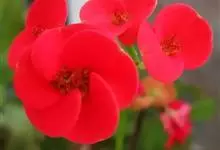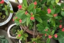 铁海棠为大戟科大戟属蔓生灌木植物;茎多分枝,具纵棱,呈旋转状;叶互生,通常集中于嫩枝上;每个花序基部边缘具微小的红色尖头;苞叶先端圆且具小尖头,无柄,上面鲜红色,下面淡红色;苞片丝状;子房光滑无毛,…全部>>