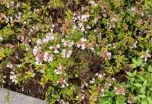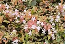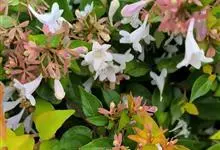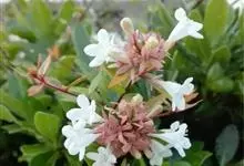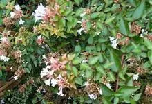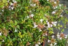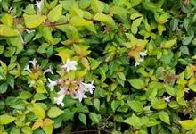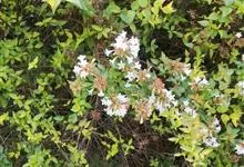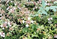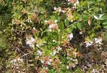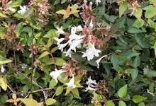大花六道木,忍冬科六道木属半常绿矮生灌木。其幼枝为红褐色,有短柔毛;叶片倒卵形为墨绿色,有光泽;花粉钟形为白色;圆锥花序,开花繁茂;花期长,5~11月持续开花。…全部>>