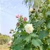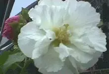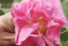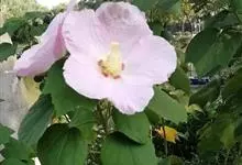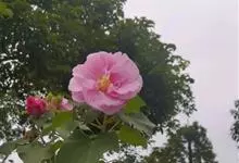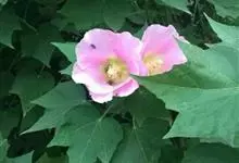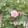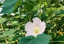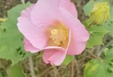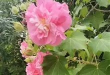 木芙蓉,锦葵科木槿属落叶灌木或小乔木。小枝上有细绒毛;叶片为卵状心形,托叶为披针形,常早落;花单生,花萼为钟形,花冠初为白色或淡红色,后逐渐变为深红色;果实为扁球形,有淡黄色的毛附着。花期8到10月。…全部>>