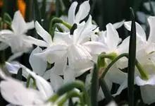 水仙 Masamura & Yanagih.):又名中国水仙,是多花水仙的一个变种。是石蒜科多年生草本植物。水仙的叶由鳞茎顶端绿白色筒状鞘中抽出花茎再由叶片中抽出。一般每个鳞茎可抽花茎1-2枝,…全部>>