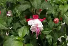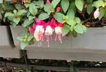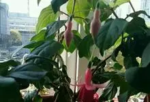 倒挂金钟是柳叶菜科倒挂金钟属亚灌木植物。茎直立,多分枝;幼枝带红色,被短柔毛与腺毛,老时渐无毛;叶对生,卵形或窄卵形,脉常带红色;常带红色,被短柔毛与腺毛;花筒红色,筒状钟形,…全部>>