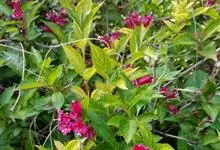 红王子锦带花是忍冬科锦带花属的落叶开张性灌木。株高1 -2米;嫩枝淡红色,老枝灰褐色;单叶对生,呈椭圆形,先端渐尖,叶缘有锯齿,红枝及叶脉具柔毛;花冠漏斗状钟形,花冠筒中部以下变细,聚伞花序,…全部>>